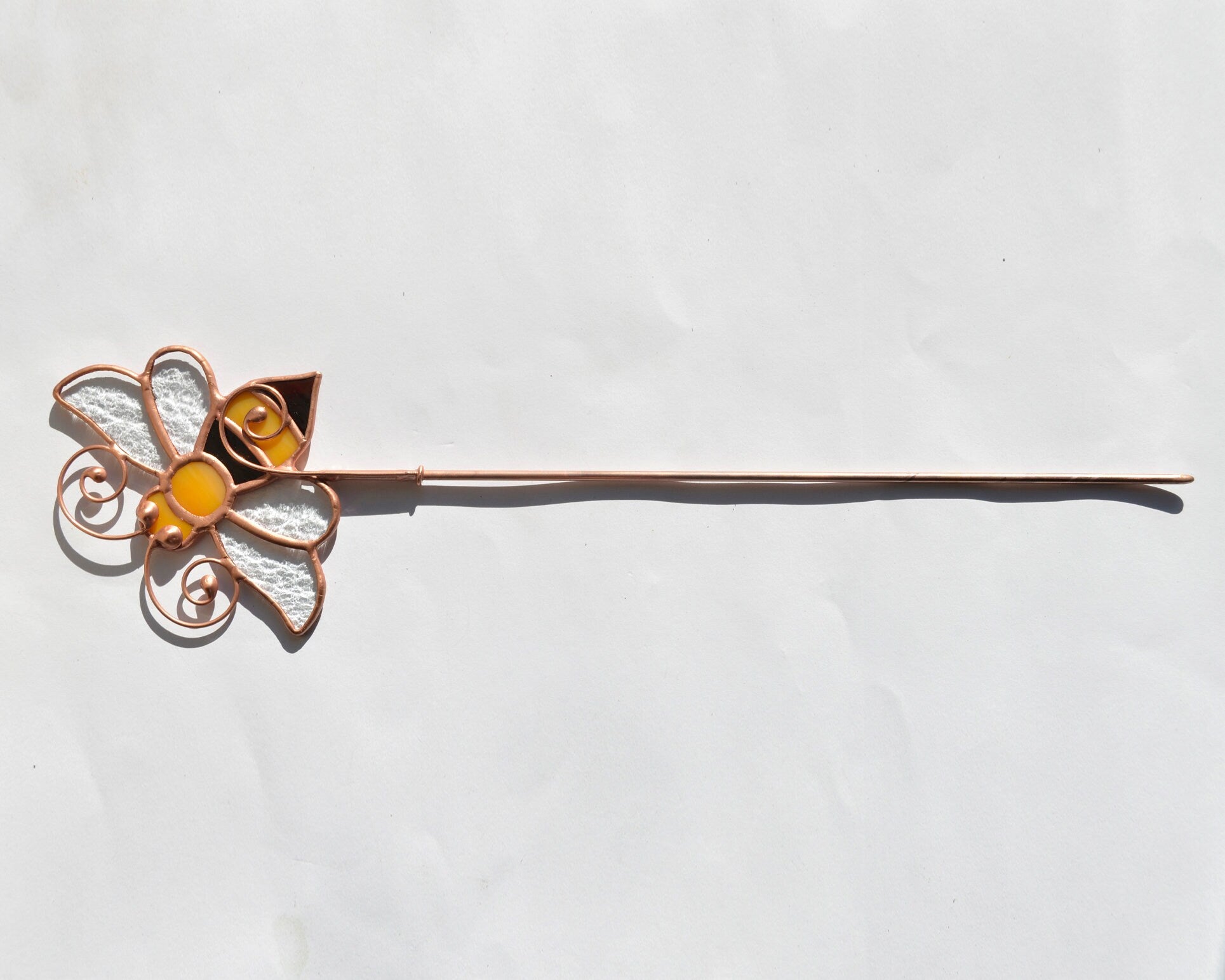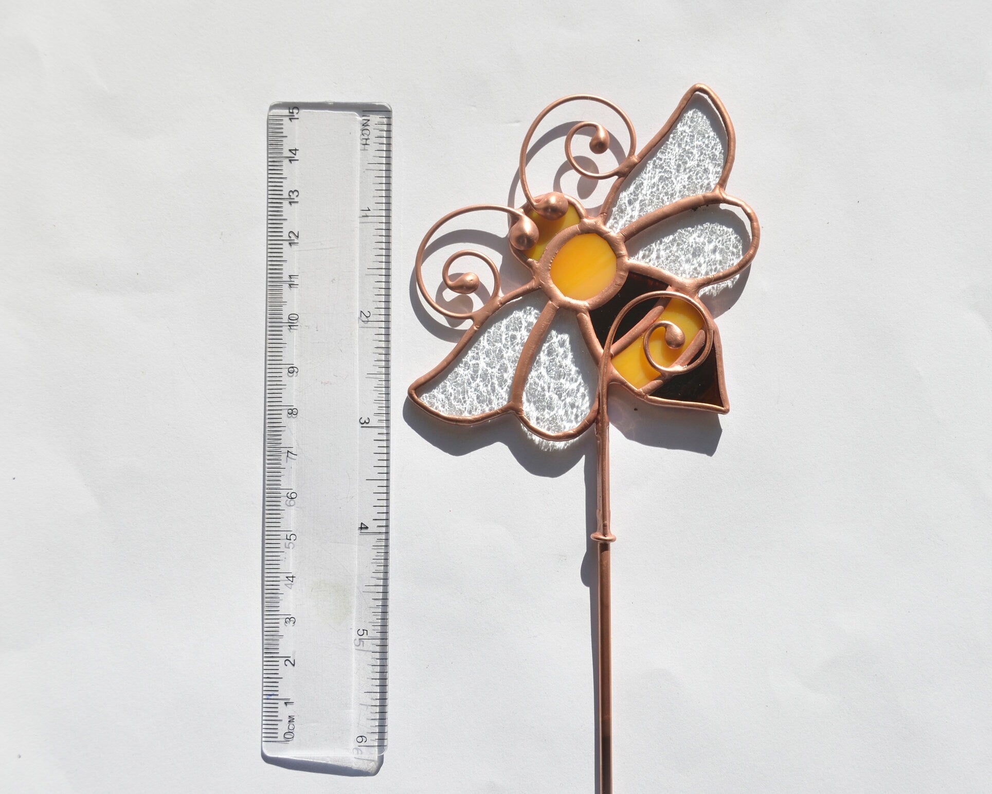 Suncatcher is soldered to a copper stake 10" long.