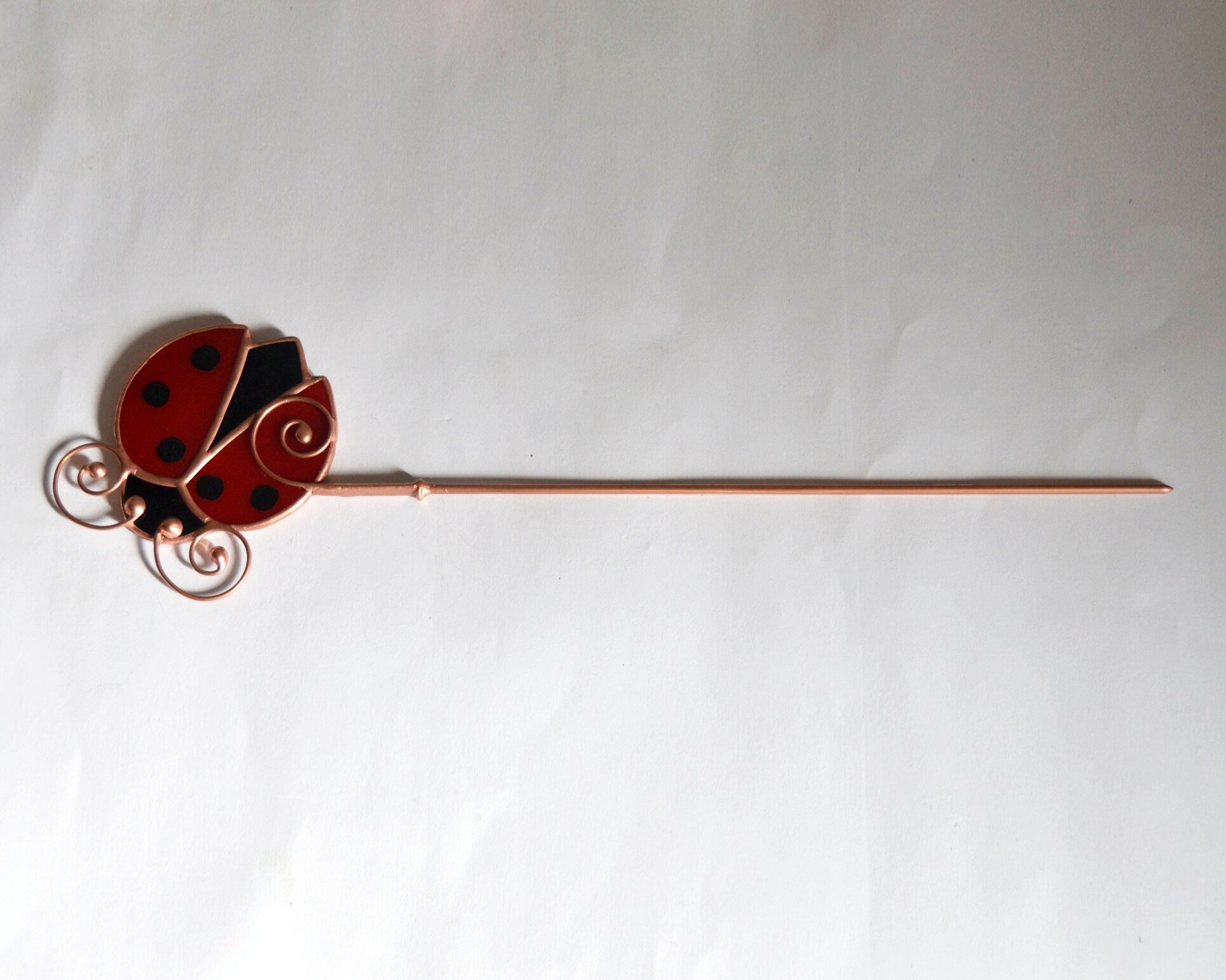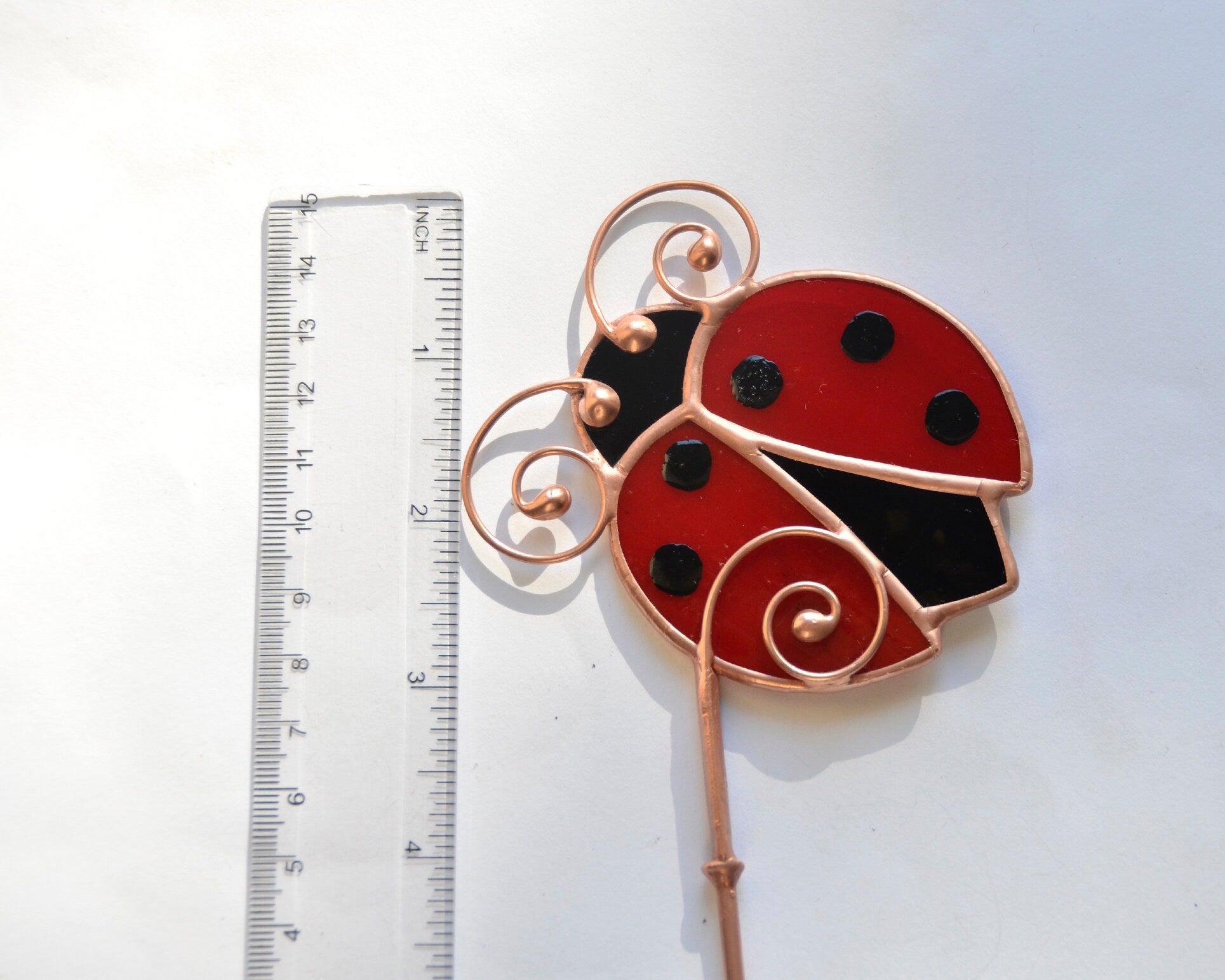 Ladybug stake garden decor, stained glass plant stake, ladybug pot ornament, ladybug suncatcher, pot decoration, Tiffany glass art