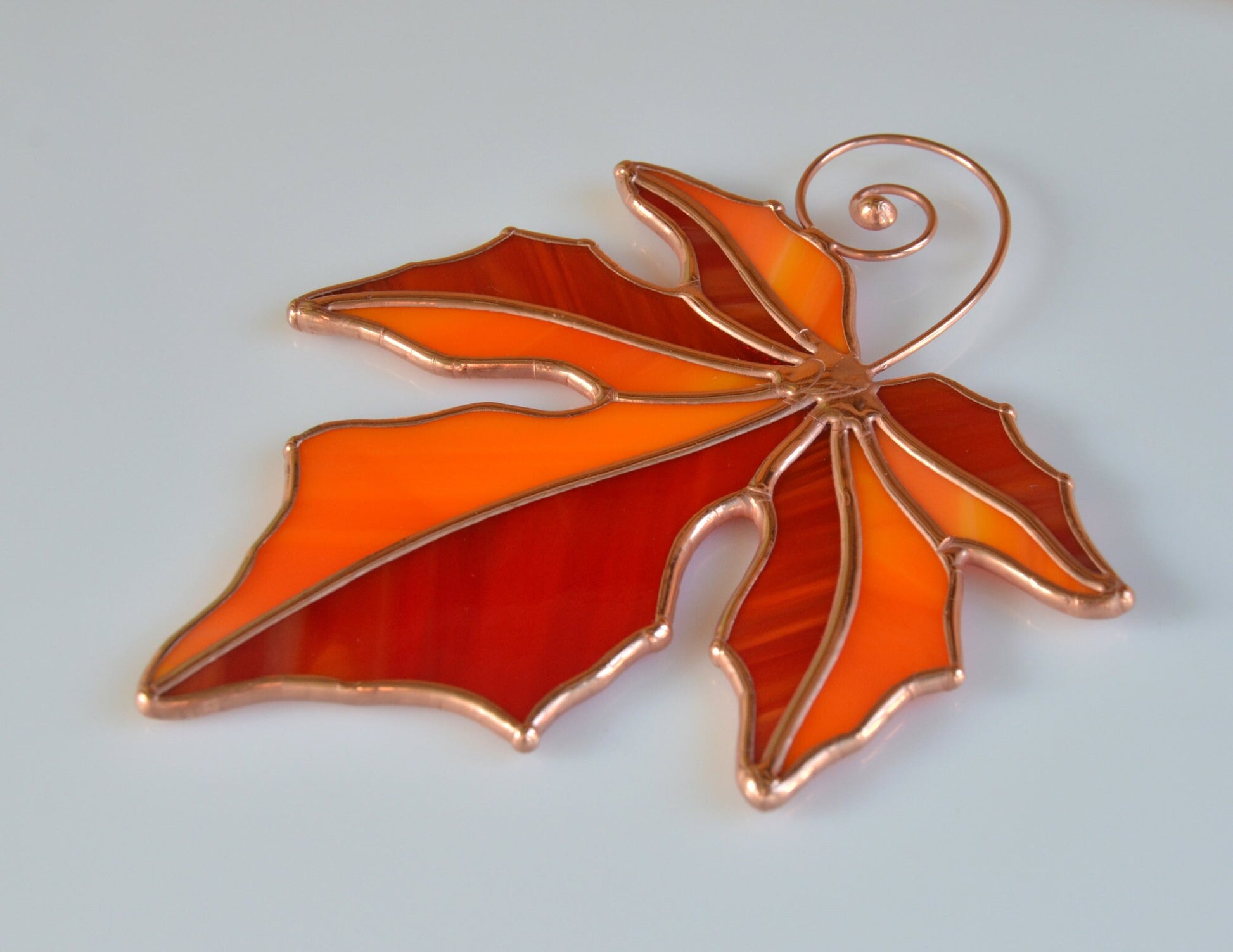 Stain glass autumn leaf suncatcher, fall window decor, Halloween window hangings suncatcher