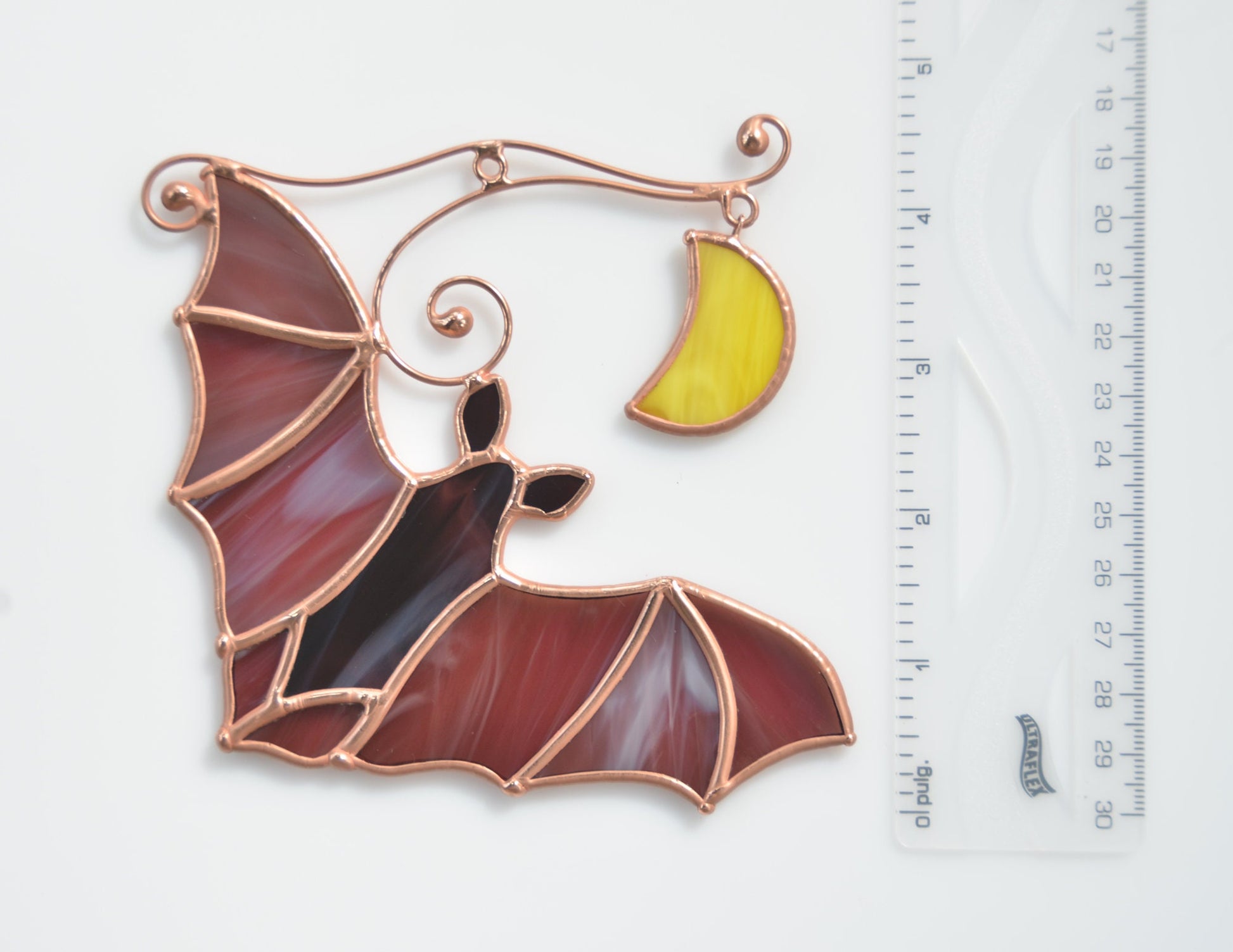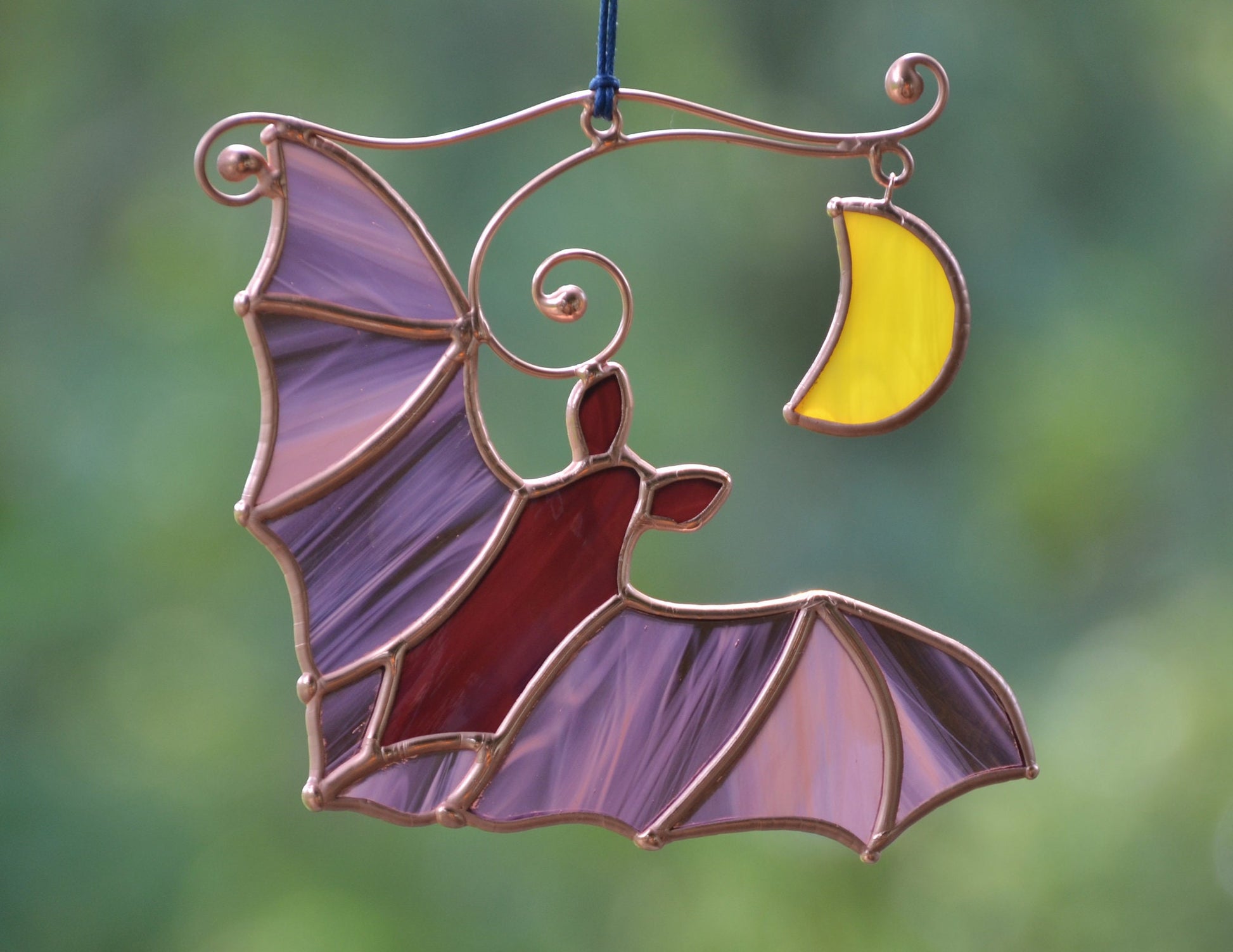Stained Glass Bat Suncatcher: Halloween Moon Window Hanging