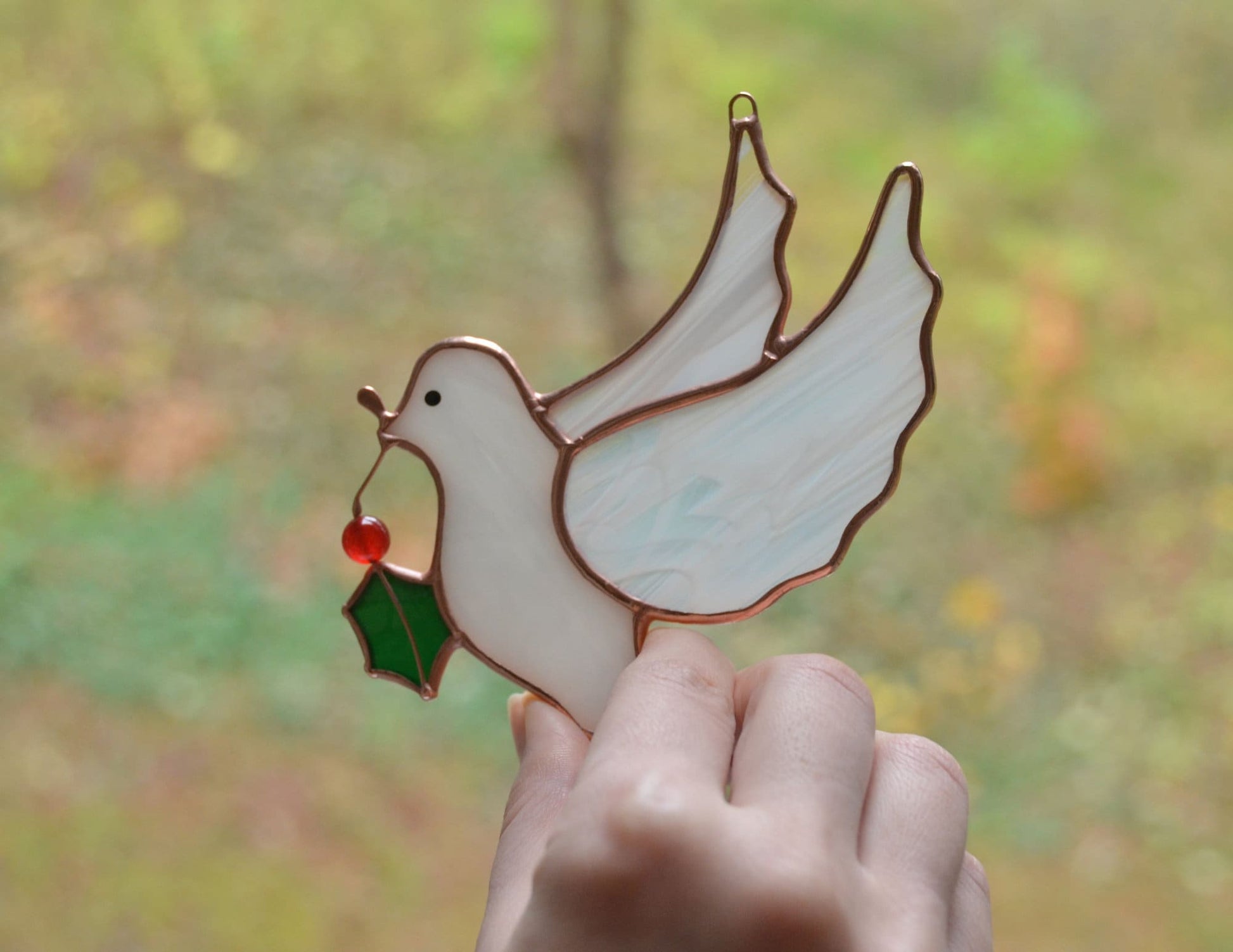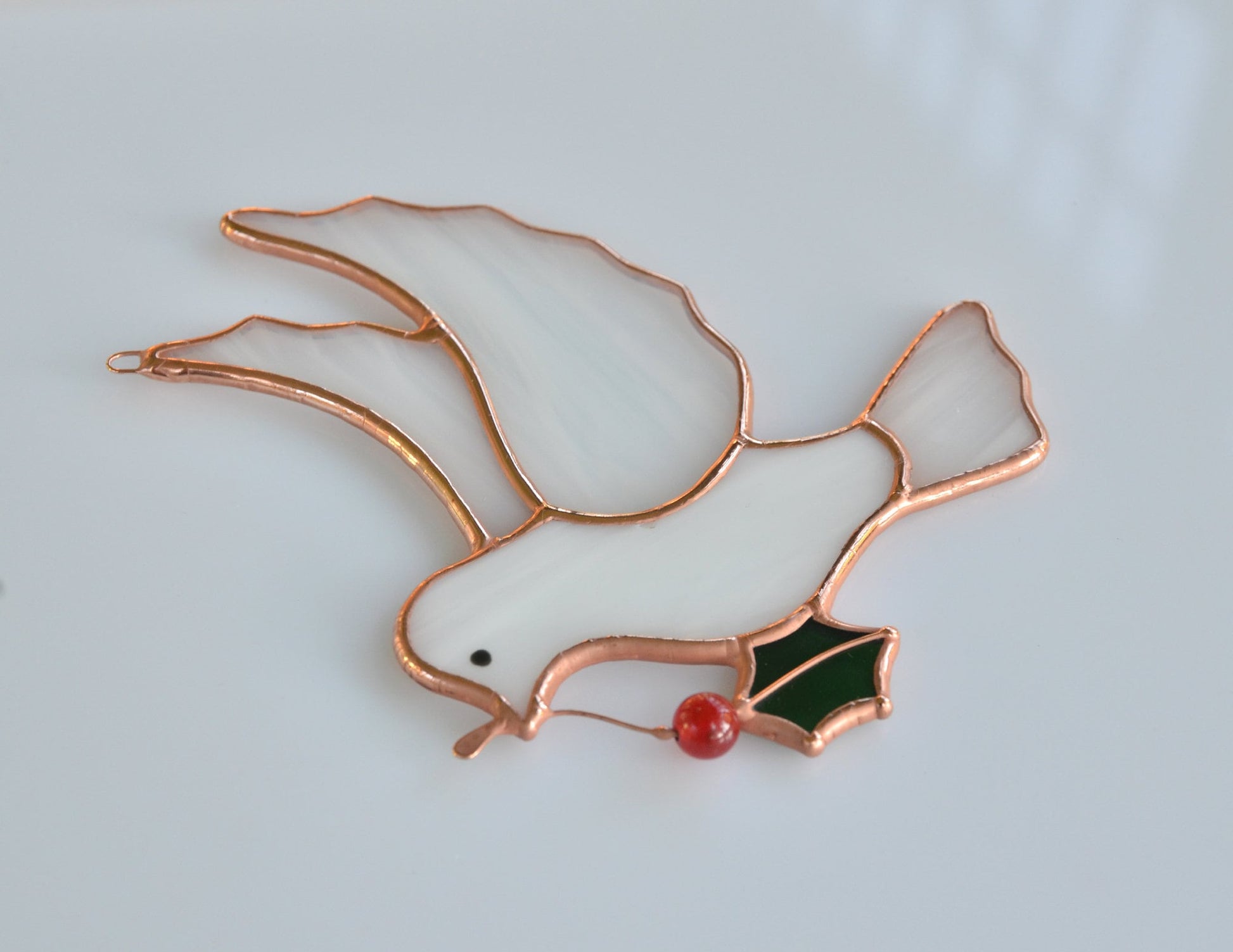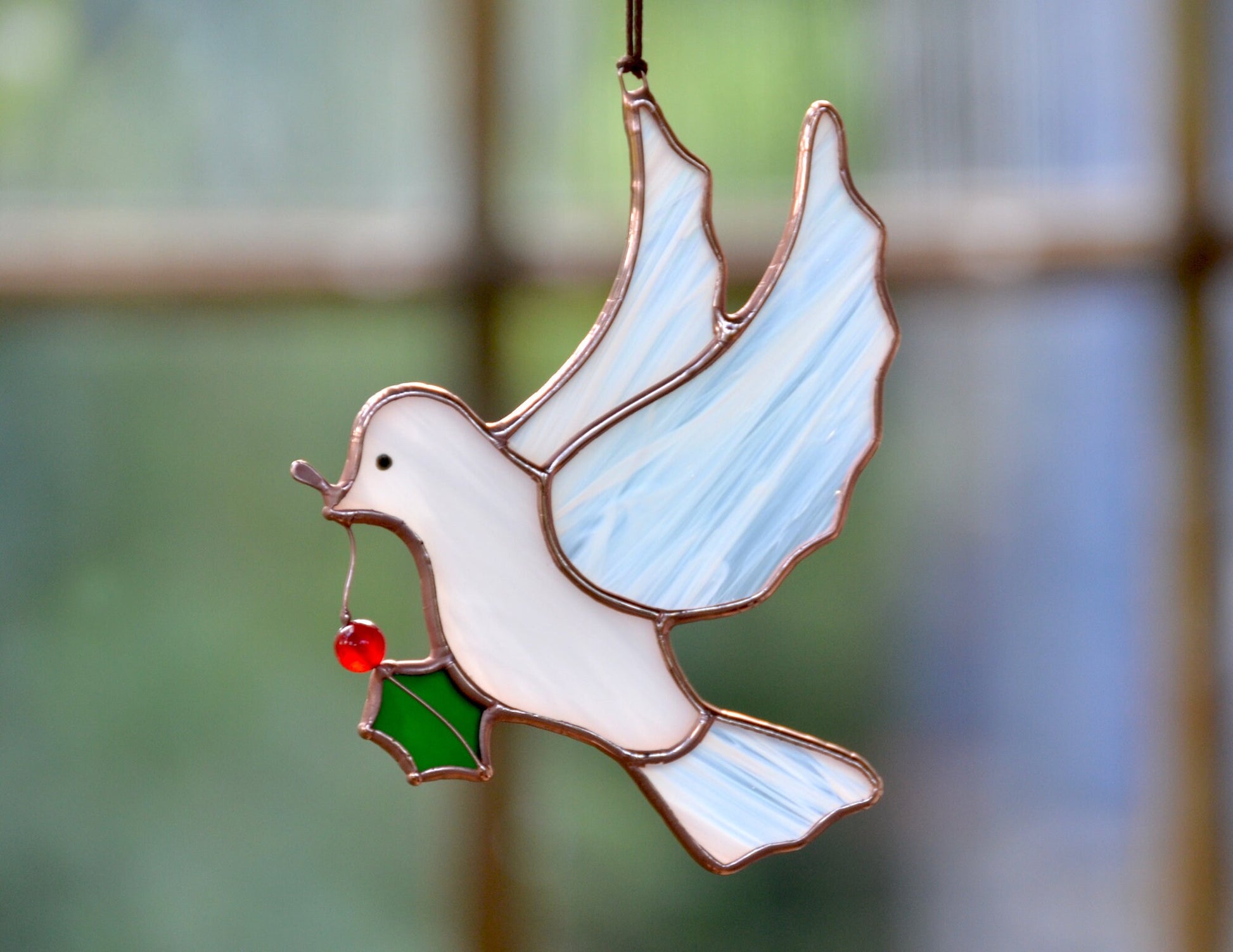 Stained glass bird, dove suncatcher, window hangings Christmas ornament