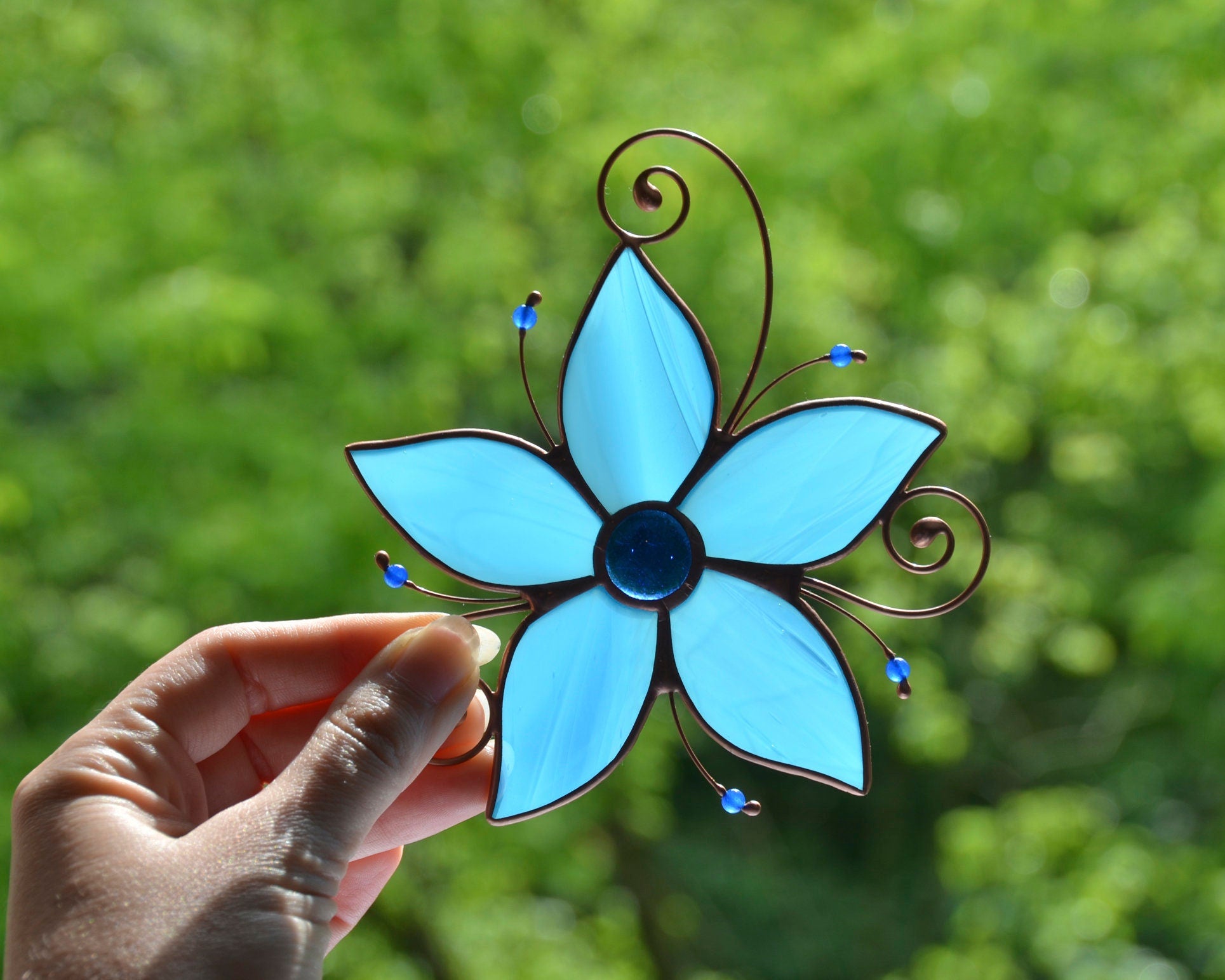 Stained glass blue flower suncatcher, suncatcher for window hanging