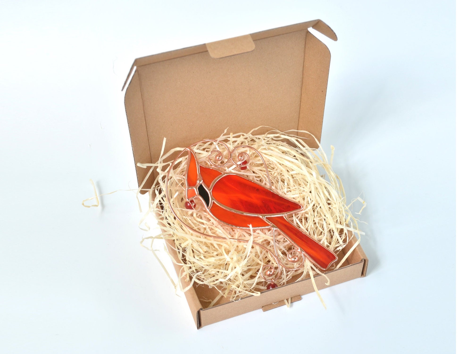 This handcrafted stained glass cardinal suncatchers adds a touch of elegance to any window. Symbolizing love and remembrance, it's a perfect gift for Mother's Day, memorials, or as a heartfelt present for bird enthusiasts.