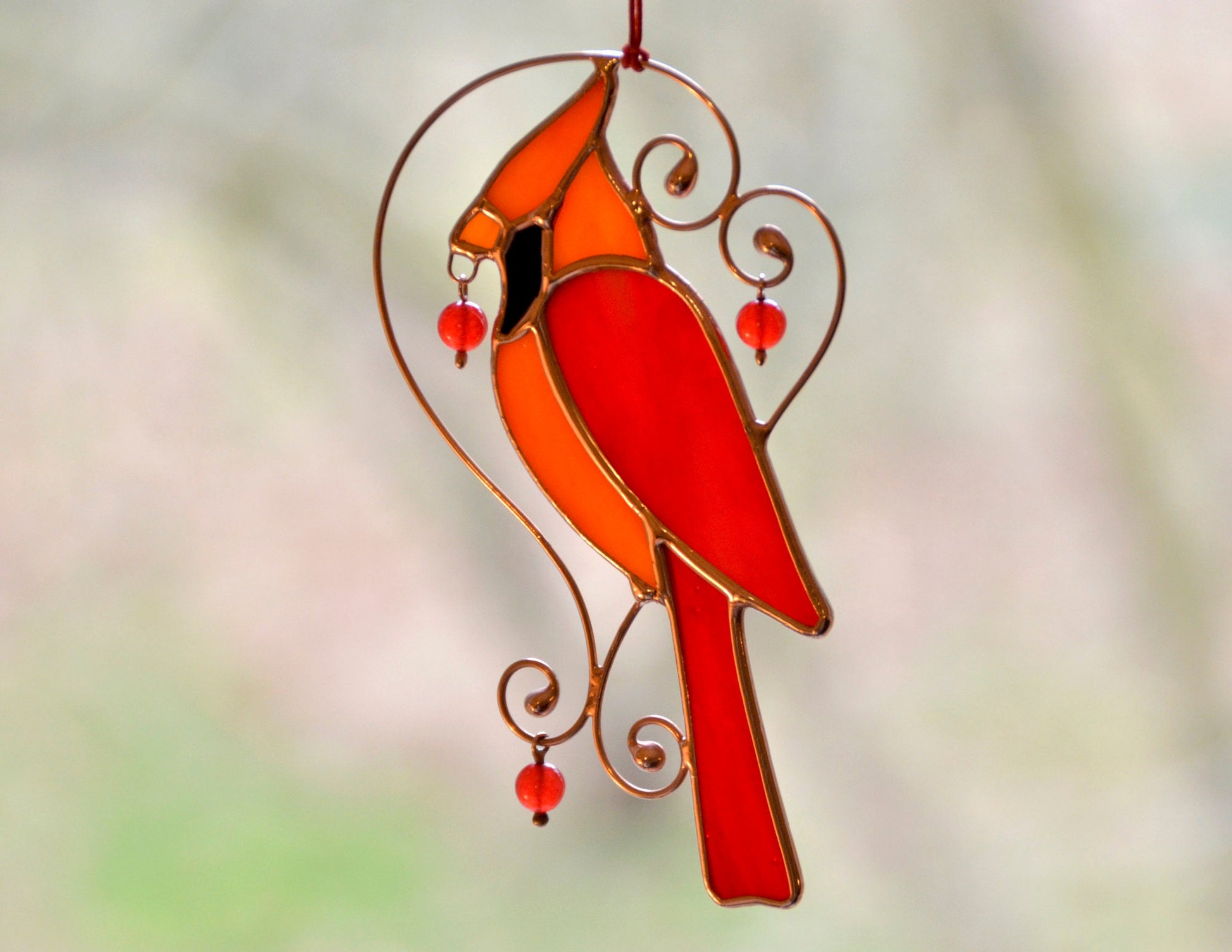 Stained Glass Cardinal Suncatchers – Red Bird Window Hangings – Memorial Gift – Handmade Christmas ornament