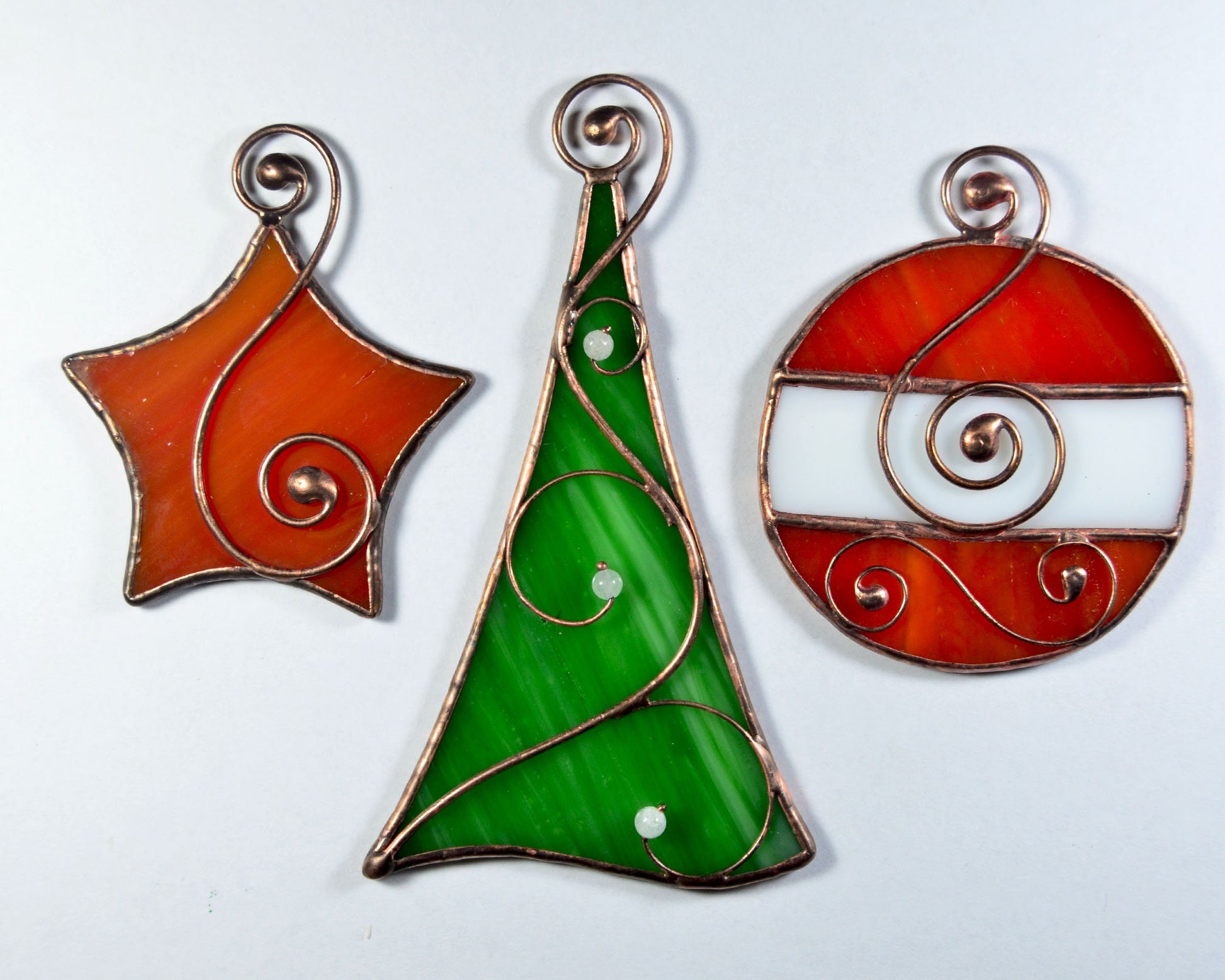 Stained glass Christmas set ornaments, Christmas suncatcher, Christmas tree decorations, Tiffany glass art