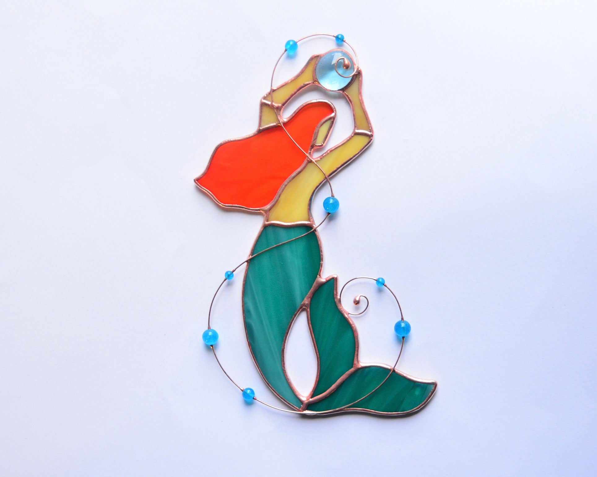 Stained glass mermaid suncatcher, mermaid gift idea, window hangings, sea lover gift, beach decor, Tiffany glass art