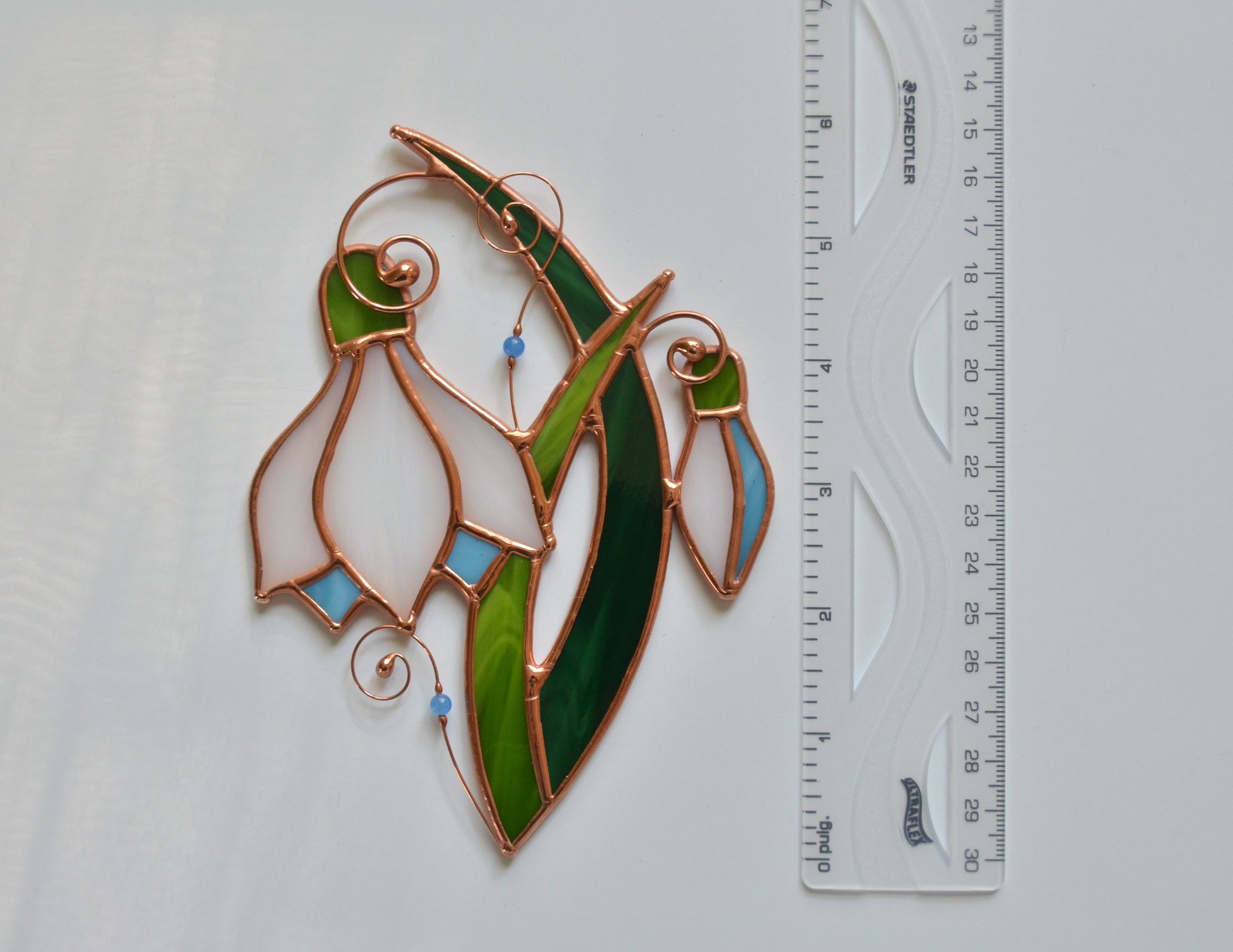 Stained Glass Snowdrop Suncatcher: Spring Flower Window Hanging