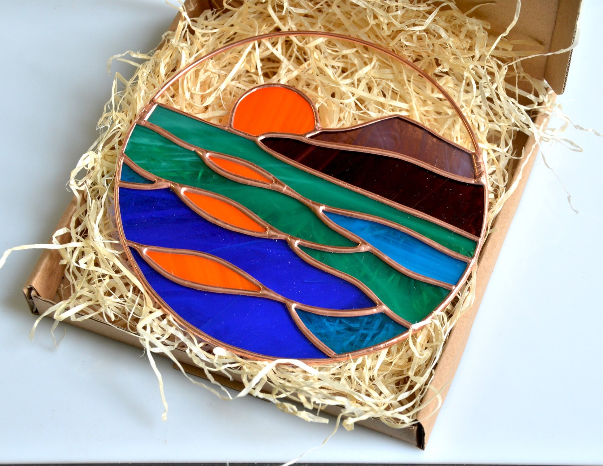 Sunset Sea Stained Glass Suncatcher: Handmade Window Hanging